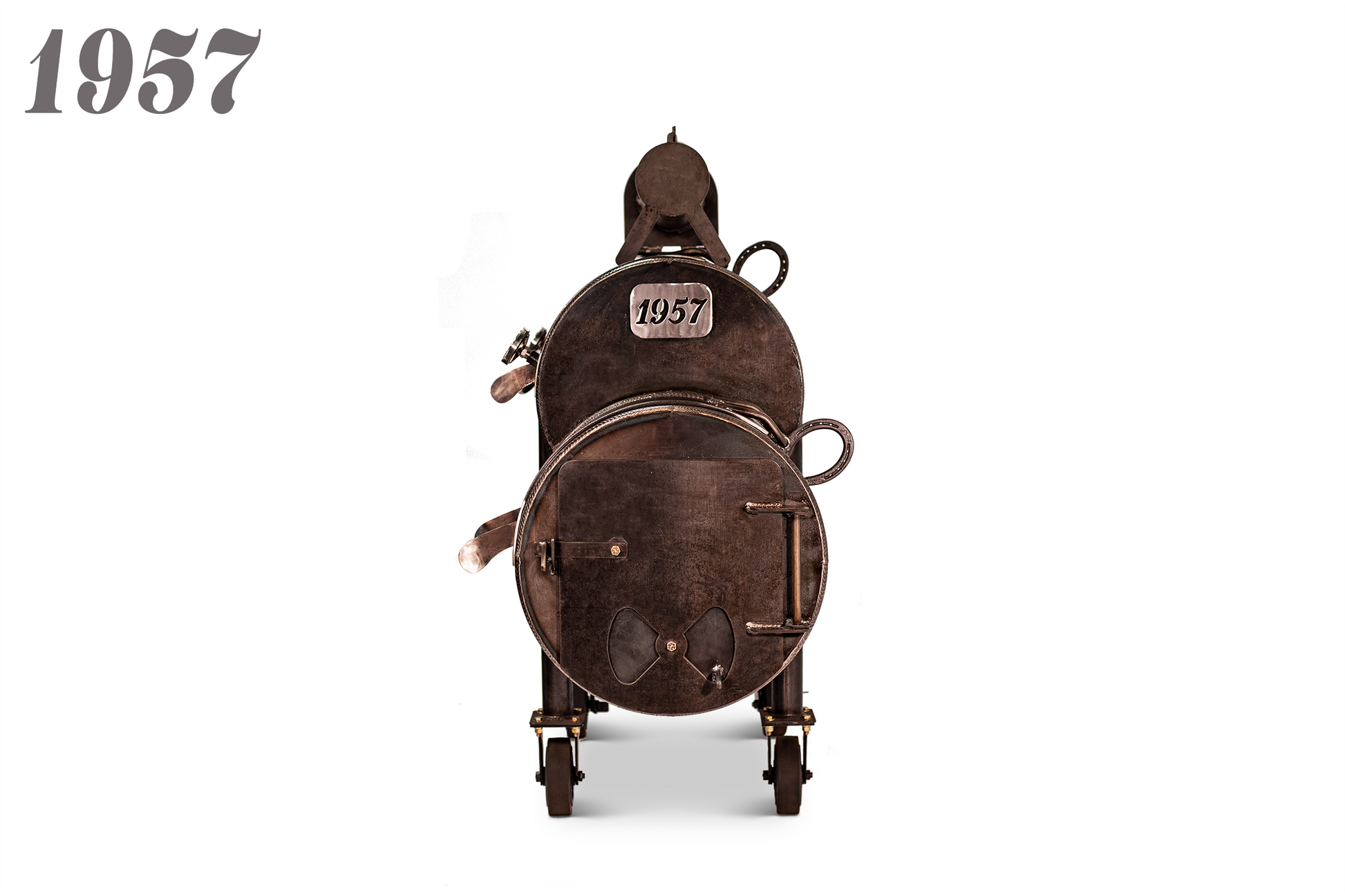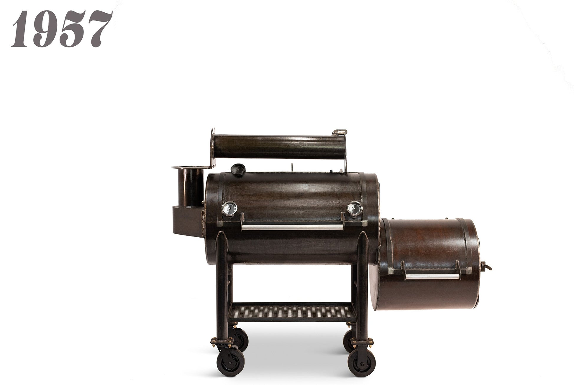 The 1957 comes available to ride on casters or a wagon package, and features two configurations (see the two options below) to output excellent BBQ. The 1957 is coated with a RAW linseed oil which allows you to keep your smoker looking brand new throughout a lifetime, or many lifetimes.