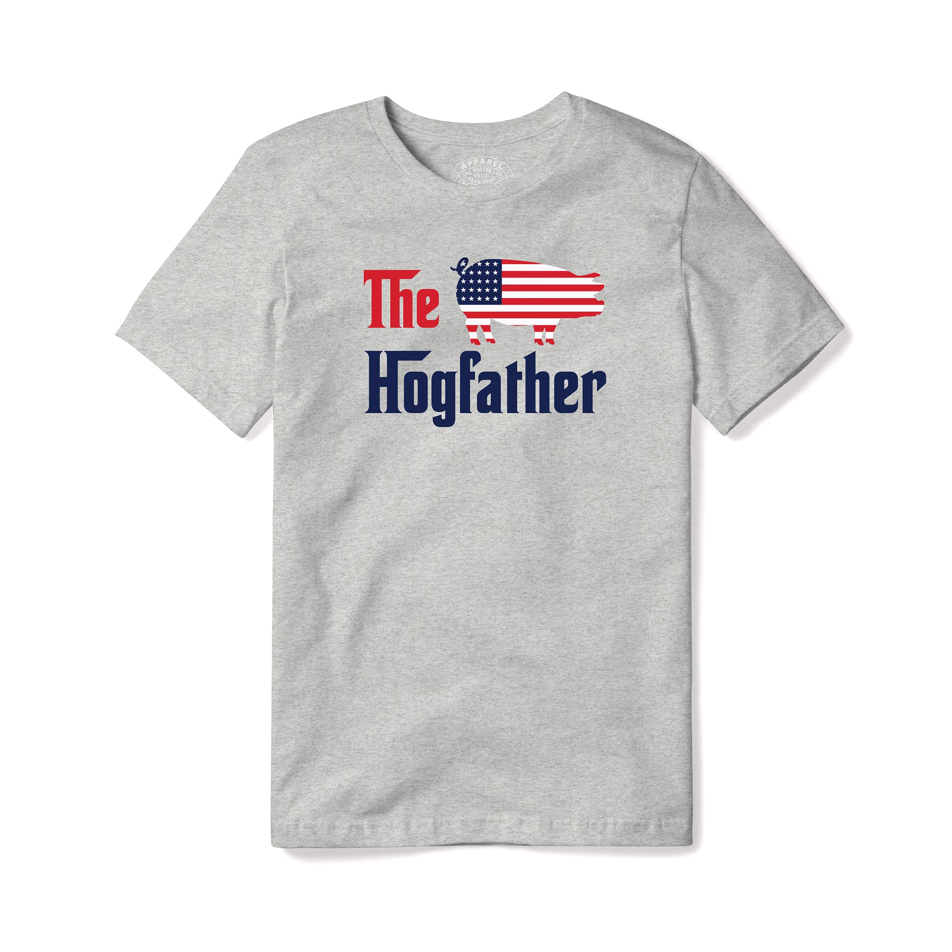 Our Patriotic "Hogfather" tee is the ultimate summer shirt for anyone who loves to grill. Heather Gray 100% cotton Next Level Tee.