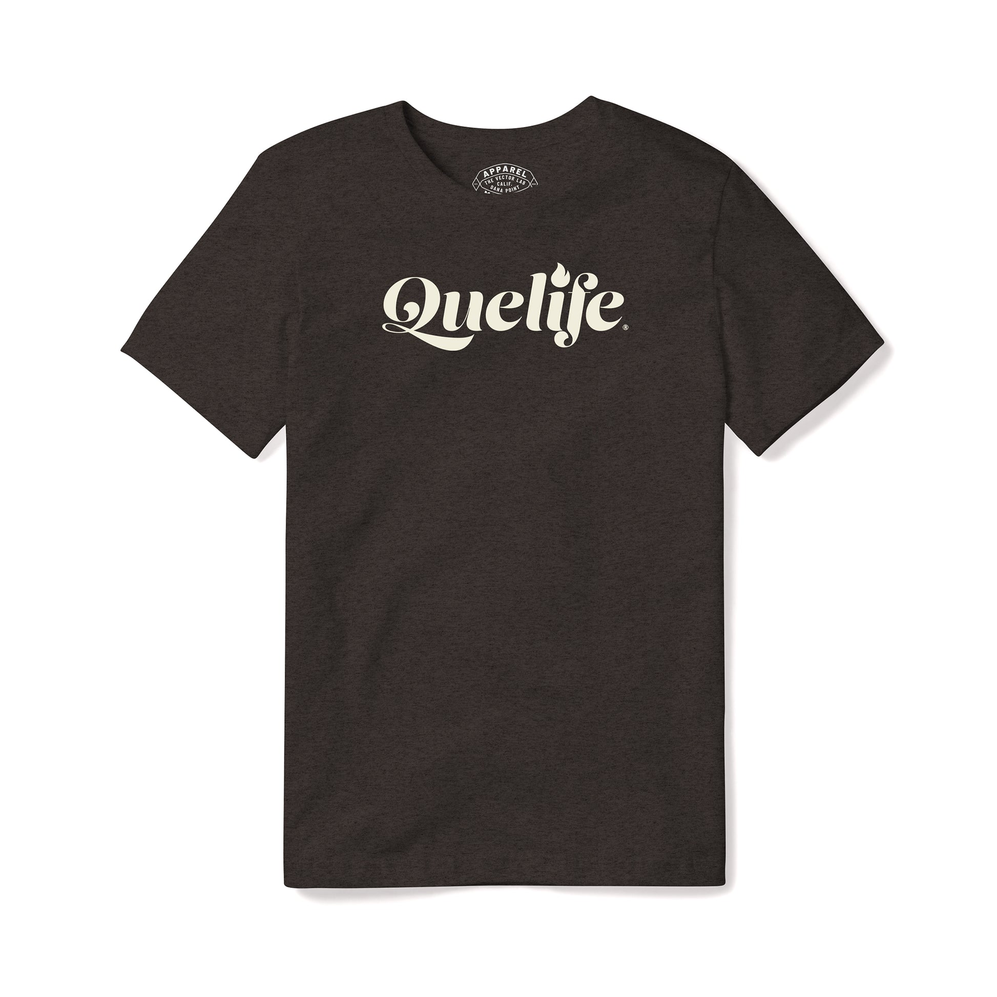 JD's Quelife tee! Cream lettering on a heather brown Next Level shirt.